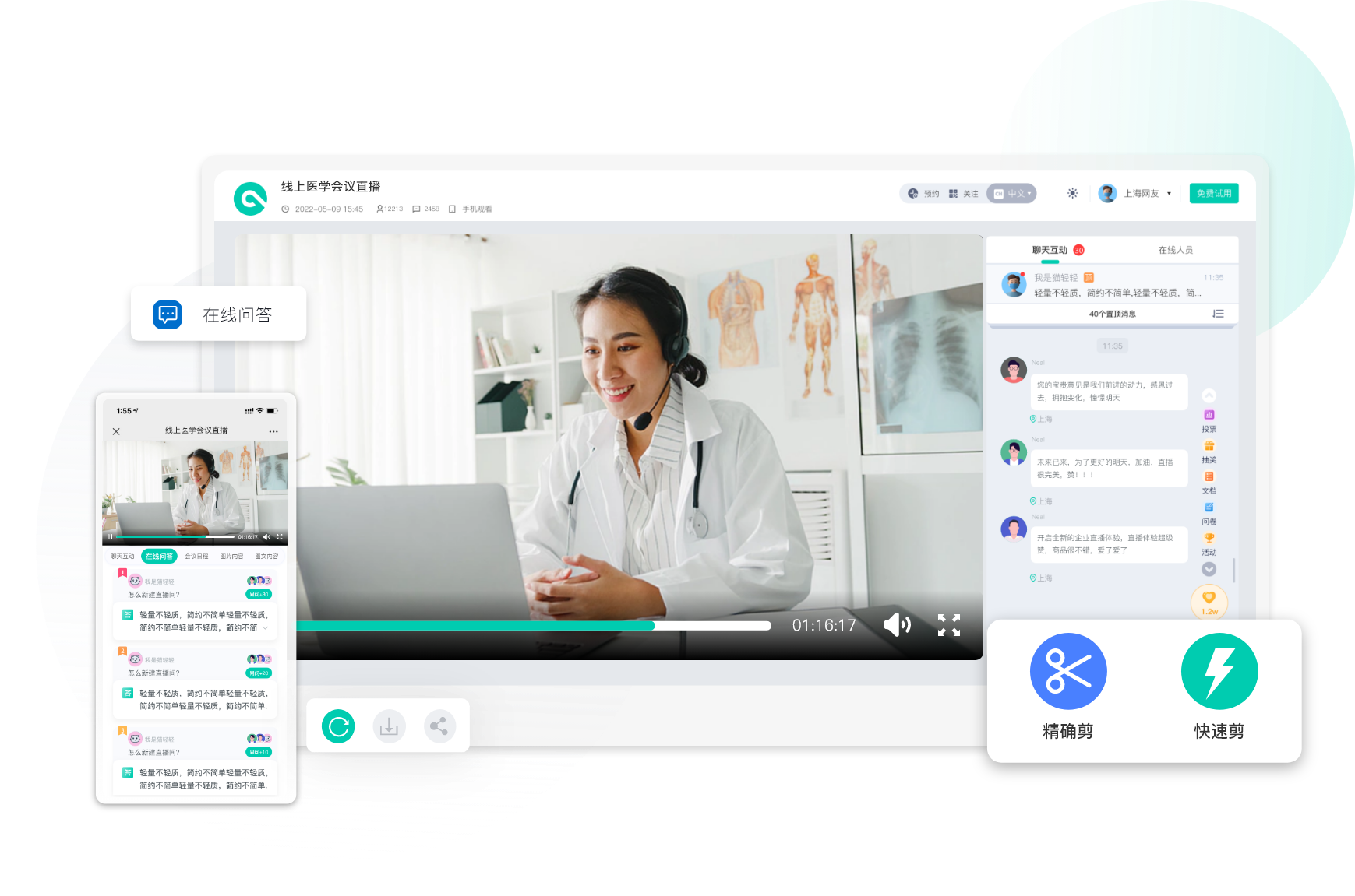 面向醫學專業人群的直播活動,支持醫師查驗服務,精準鑒權,保障傳播安全